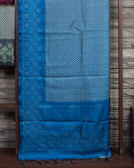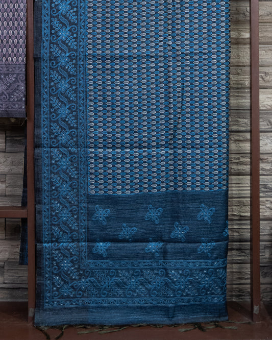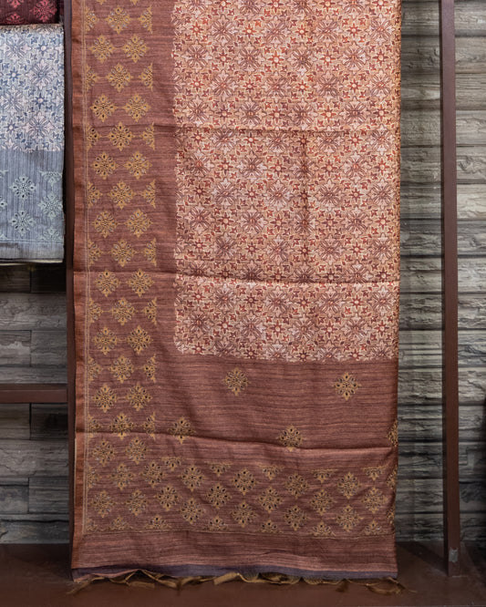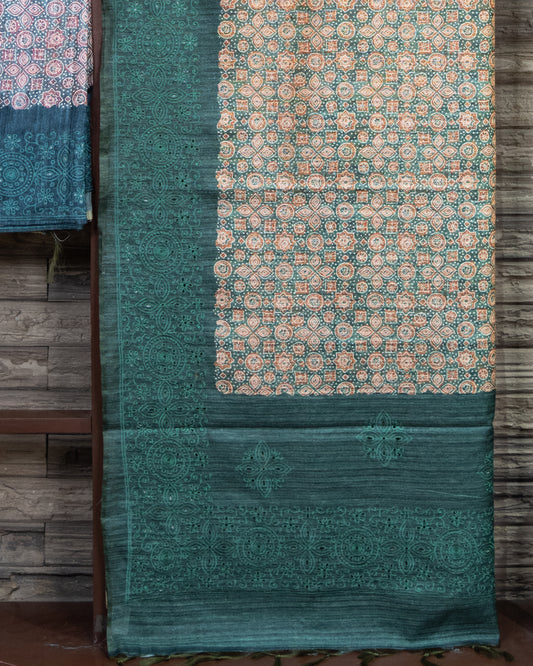 Elegant Digital Print Semi Tussar Saree With Cutwork Border & Ajrakh Concept (Set of 4)