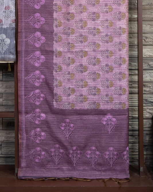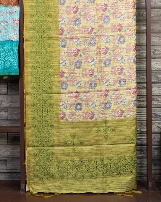 Ethnic Floral Digital Print Semi Tussar Saree With Cutwork Border (Set of 4)
