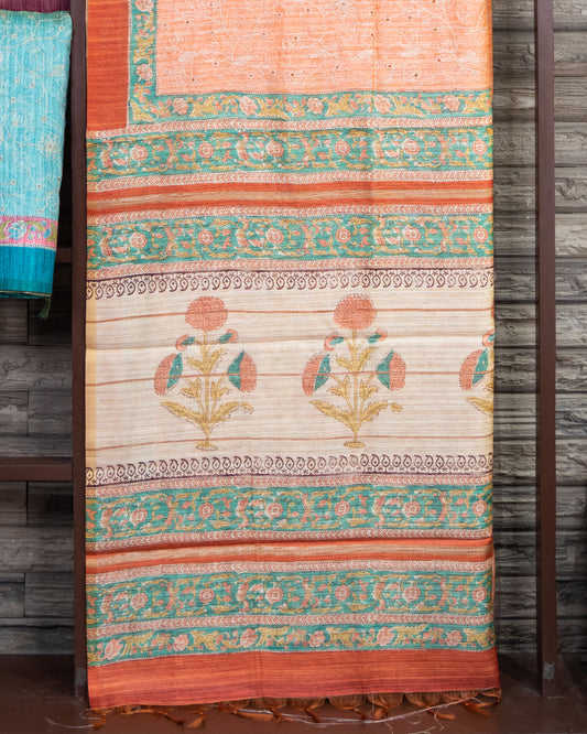 Digital Print Semi Tussar Saree With Cutwork Border & Kalamkari Concept (Set of 4)