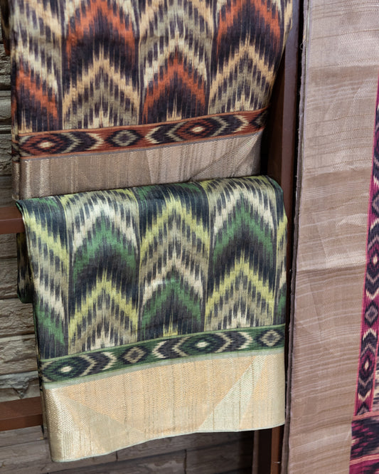 Digital Ikkat Print Semi Tussar Handloom Saree (Set of 4)