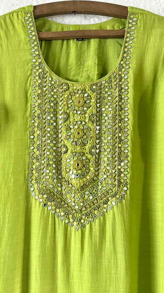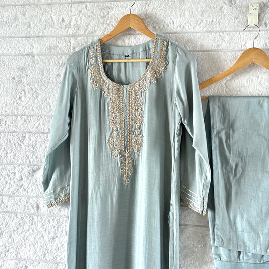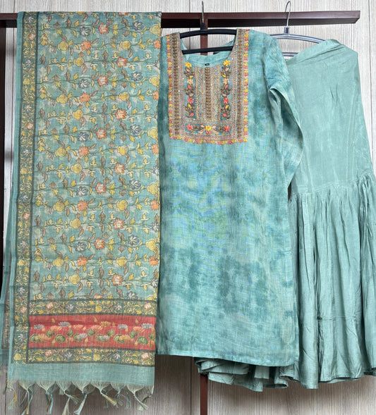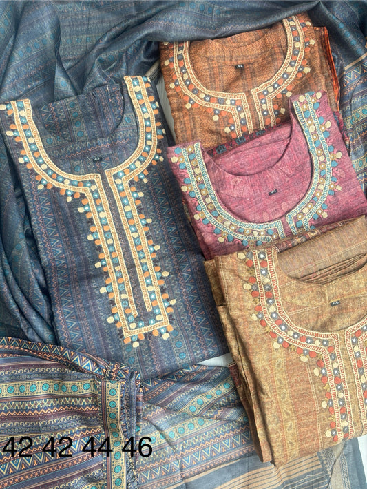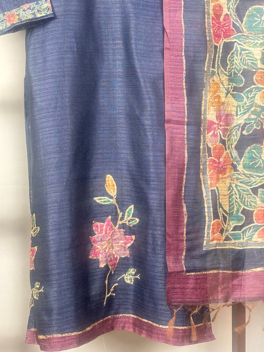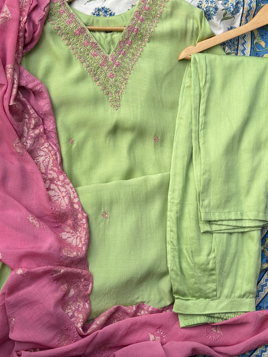 Chanderi Cotton Kurta.pant & Dupatta Set With Cutdana Work & Benarasi Dupatta