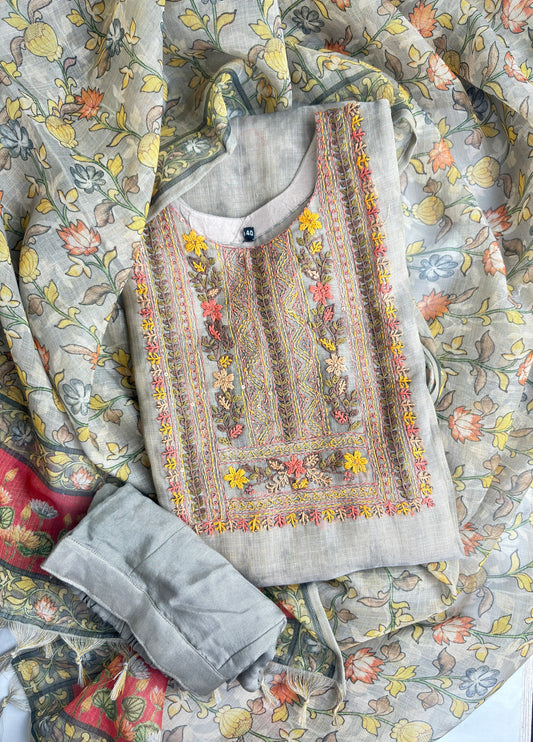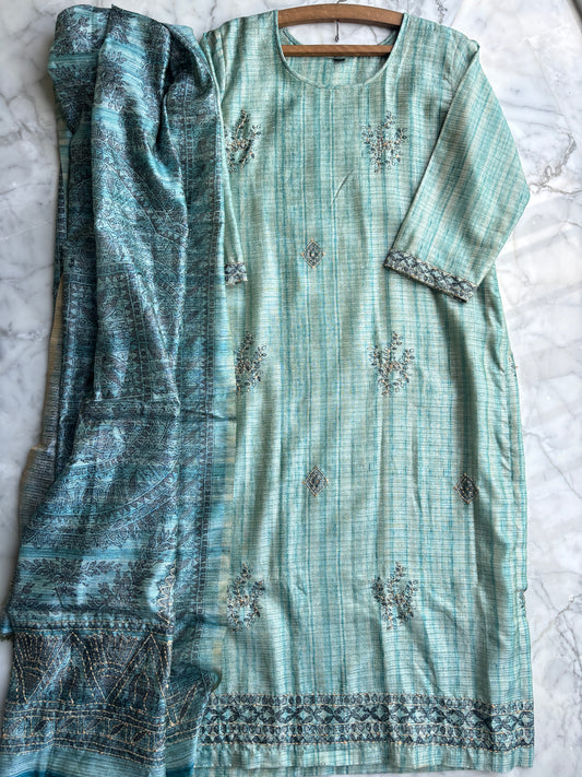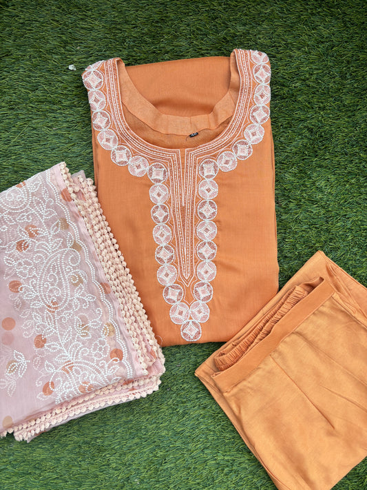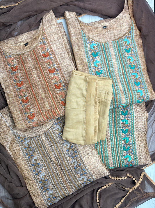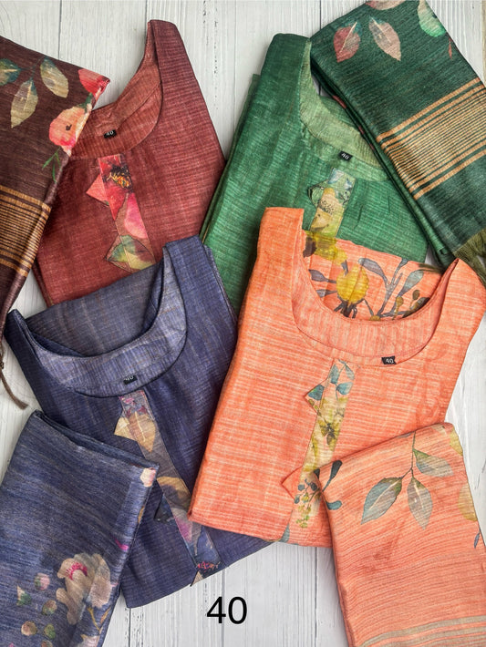 Chanderi Kurta Pant & Dupatta Set With Digital Print